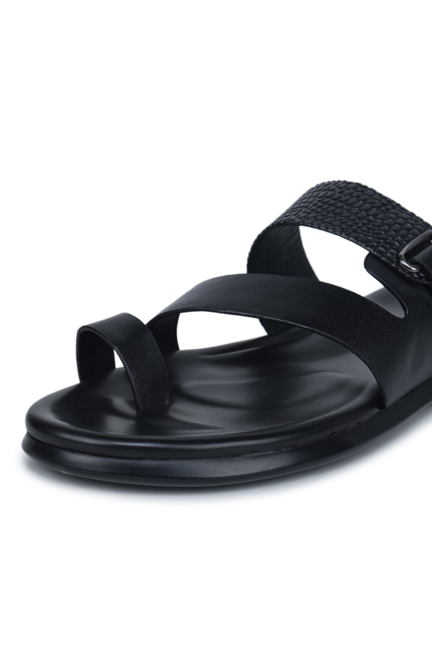Built for effortless everyday wear. these slip-on slippers feature a textured genuine leather upper paired with a soft leather inner lining for a smooth and breathable fit. The multi-strap design adds a modern touch while keeping the foot comfortably supported. and the cushioned footbed enhances comfort with every step. Finished with a flexible outsole for steady grip. this pair is ideal for casual outings. home wear or relaxed weekend use. Simple. durable and stylish. these slippers offer comfort without compromising on looks.